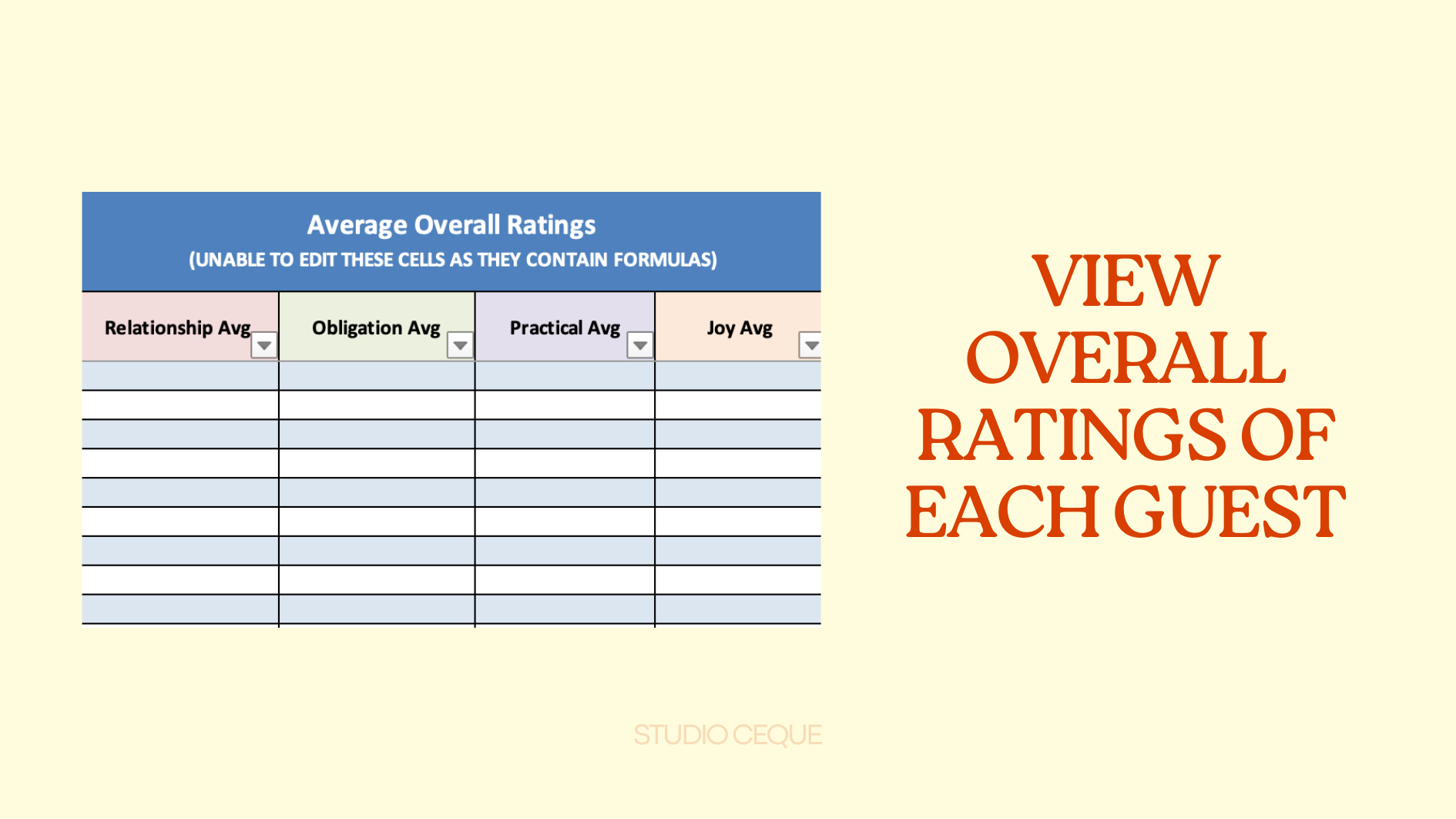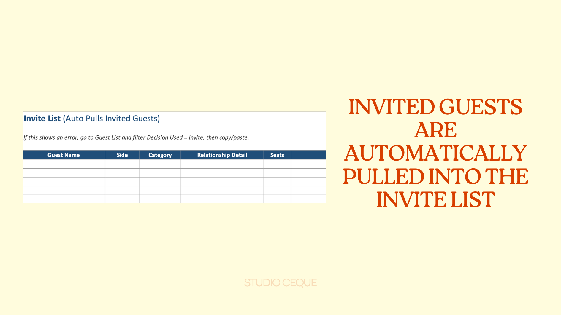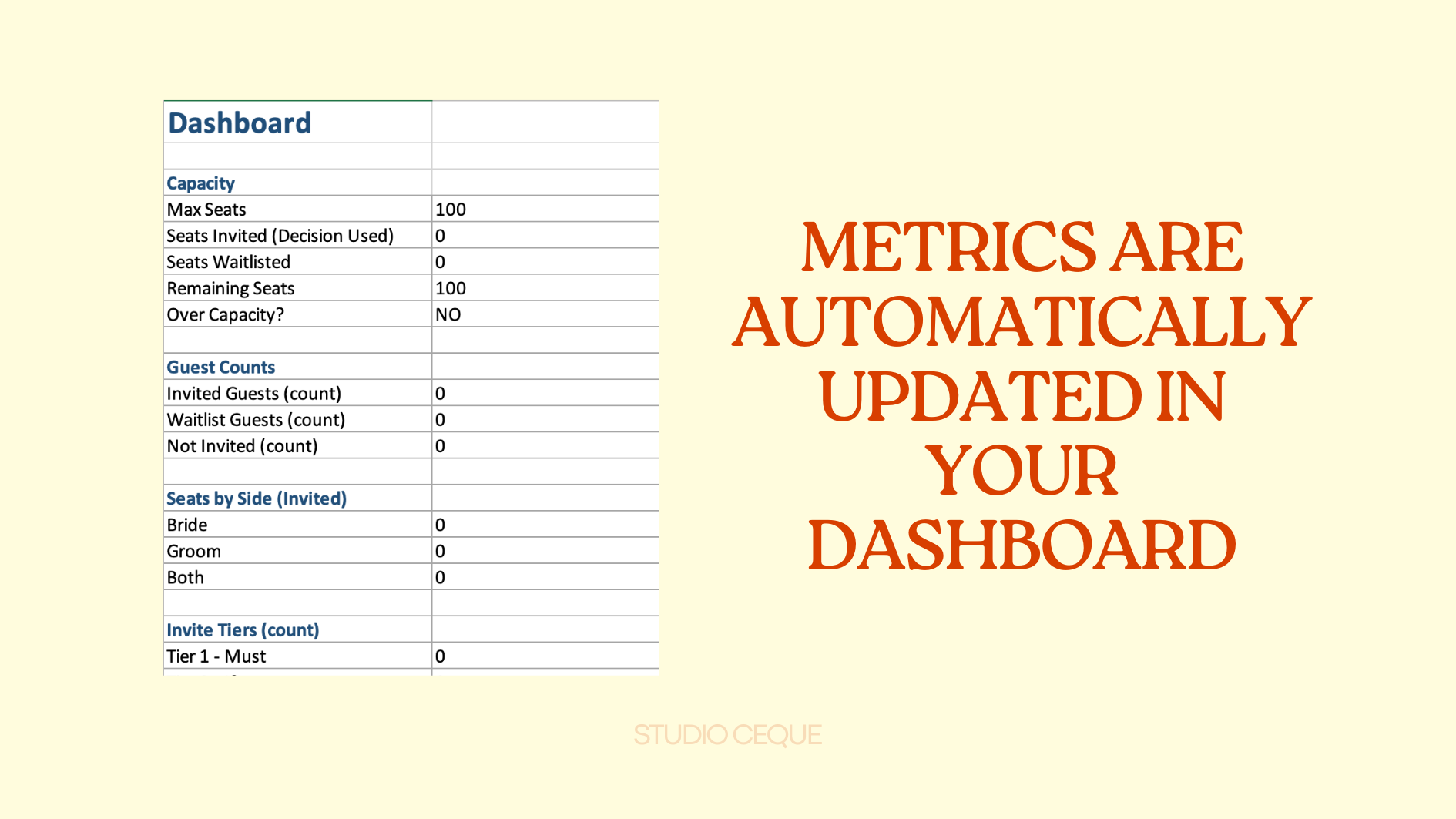 A structured Excel tool designed to help you decide who to invite to your wedding — calmly, fairly, and without guilt.